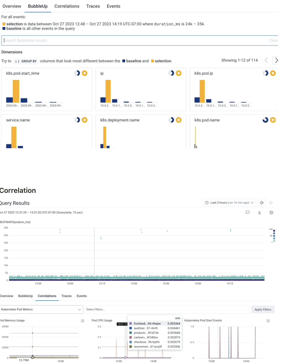 - 특징03 BubbleUp과 Correlation 기능을 통해 분석기능 제공