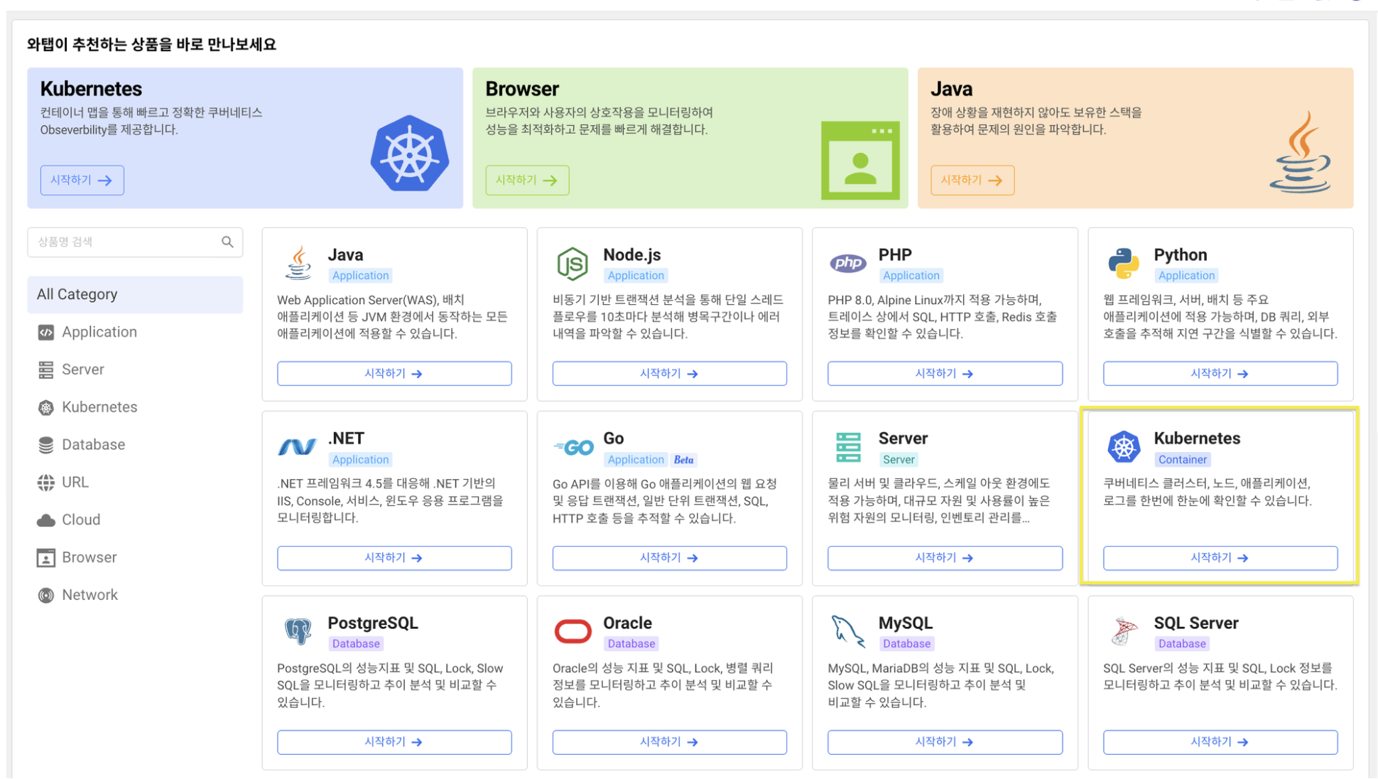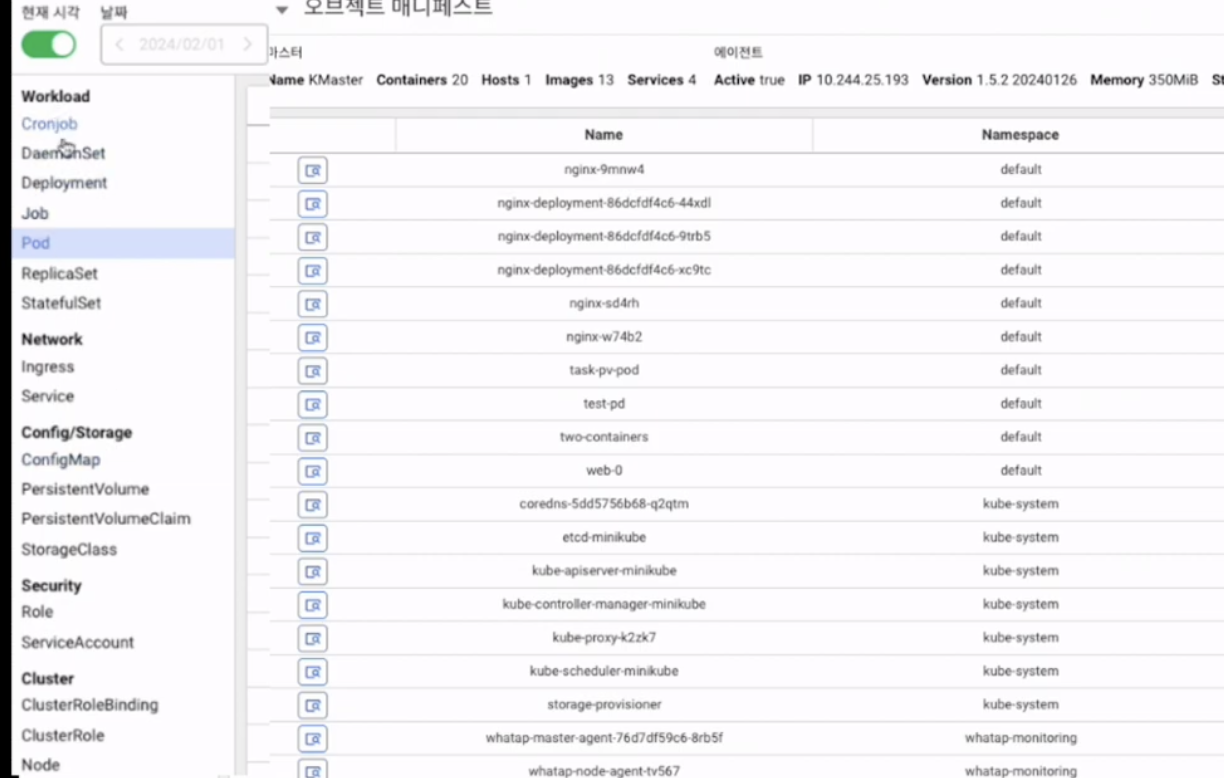 와탭 쿠버네티스 모니터링 대표 기능