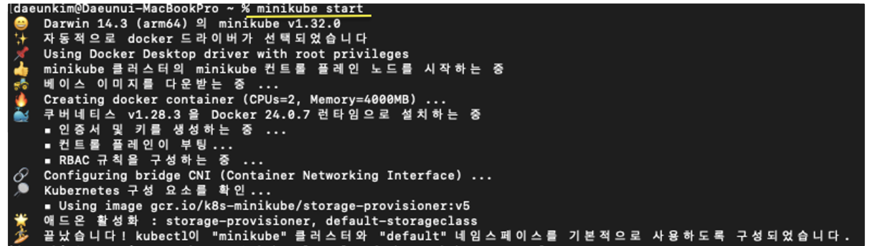 이렇게 하면 Minikube가 시작되고 로컬 환경에서 Kubernetes 클러스터가 구축됩니다.