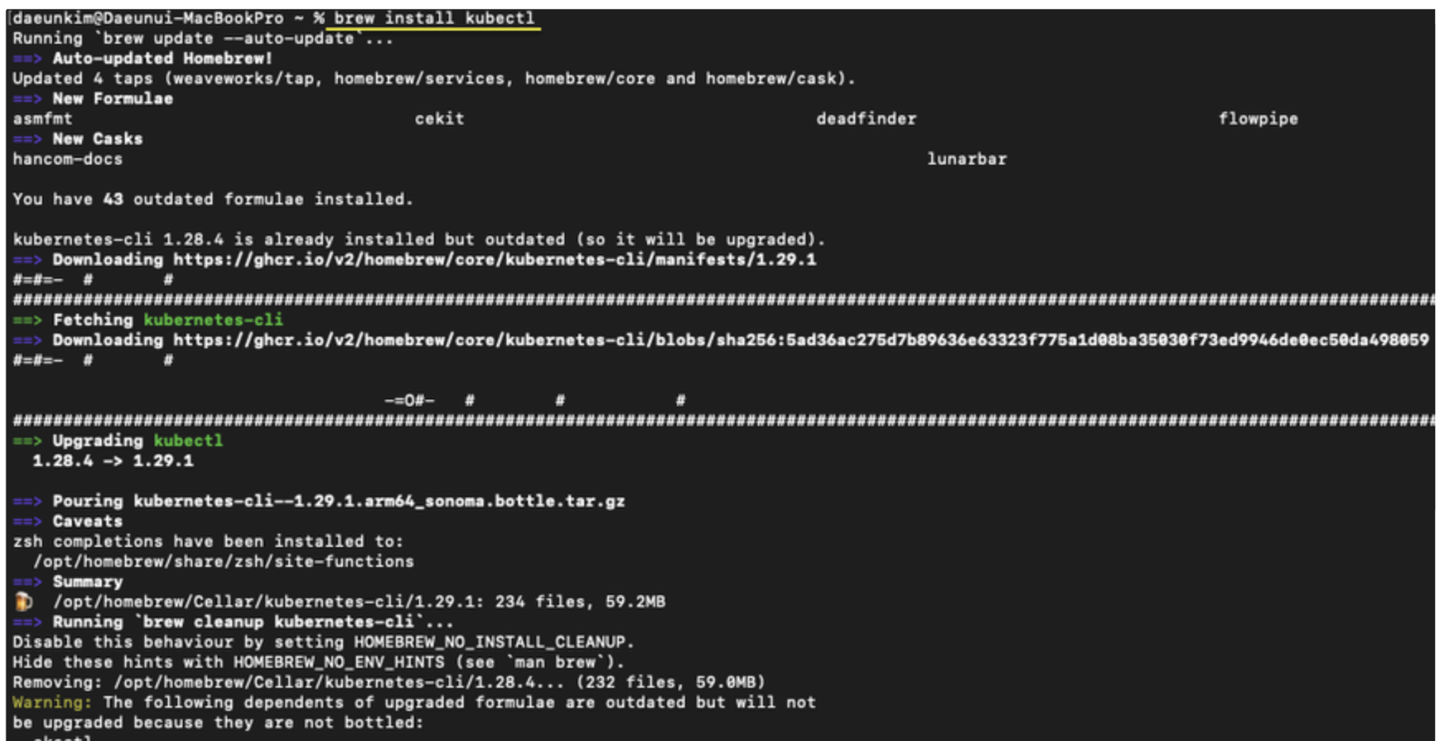- Homebrew를 사용하여 kubectl을 설치합니다.