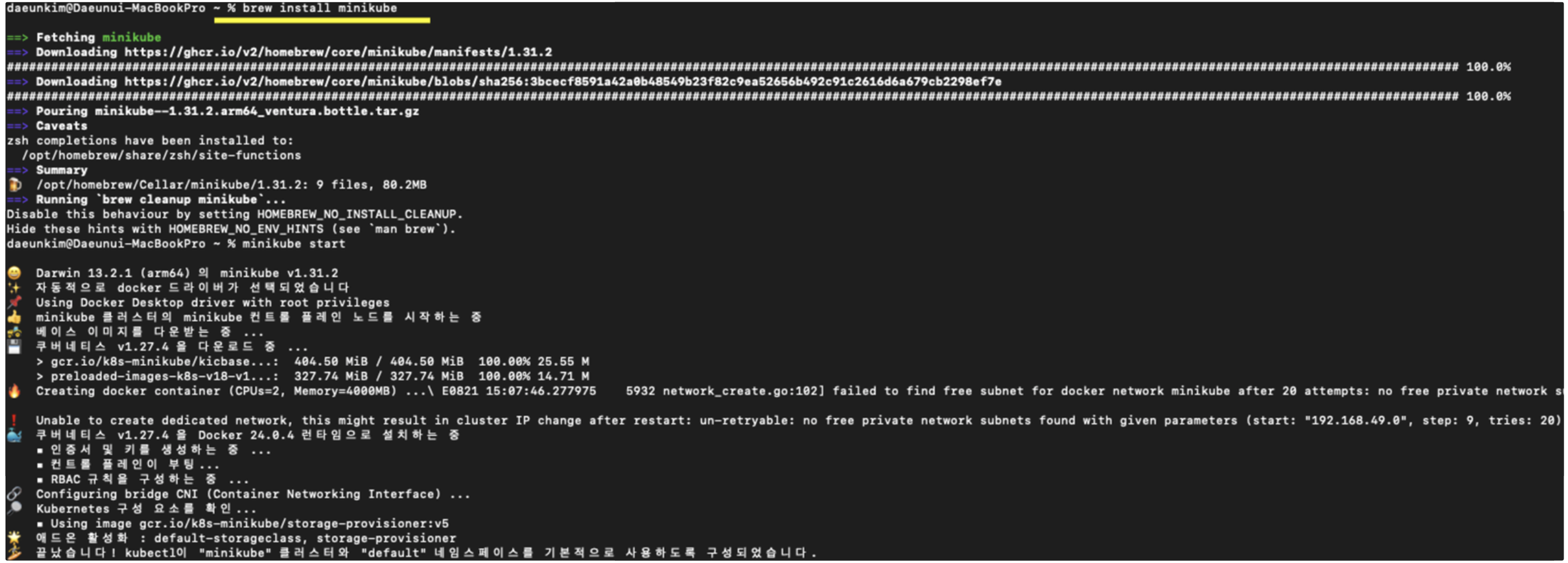- Homebrew를 사용하여 Minikube를 설치합니다.