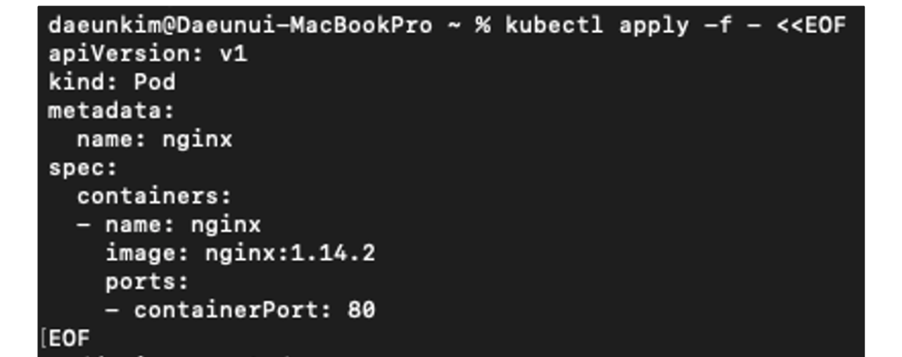 - 아래의 명령어를 통해 Pod를 생성할 수 있습니다.