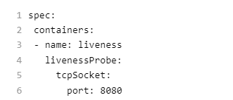 쿠버네티스는 저장된 Port에서 TCP 연결 설정을 시도한다. 연결을 설정할 수 있으면 컨테이너는 정상으로 간주된다. 그렇지 못한 경우에는 실패로 간주된다. 이제 HTTP Probe또는 Command Probe가 제대로 작동하지 않는 시나리오가 있는 경우 이러한 기능이 유용할 수 있다. 예를 들오 gRPC 또는 FTP 서비스는 이러한 유형 Probe에 대한 주요 후보가 된다.