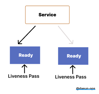 프로세스가 계속 실행되기 때문에 기본적으로 쿠버네티스는 모든 것이 정상이라고 생각하고 손상된 Pod에 요청을 계속 보낸다.
