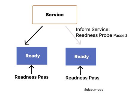 - 앱이 트래픽을 처리할 준비가 된 시기를 쿠버네티스에게 알리도록 설계되어있다. 쿠버네티스는 서비스가 Pod에 트래픽을 전송하도록 허용하기 전에 ReadnessProbe가 통과하는지 확인한다. ReadnessProbe가 실패하기 시작하면 쿠버네티스는 다시 통과할 때 까지 Pod로의 트래픽 전송을 중지한다.