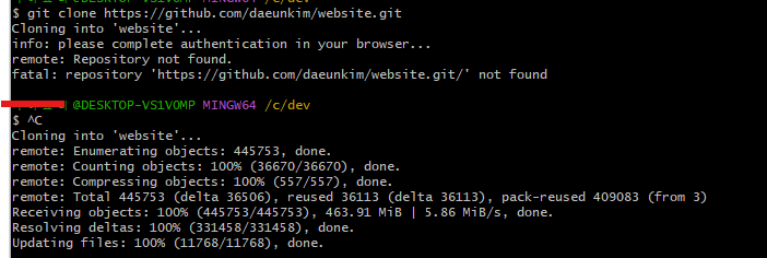 - 실행 명령어 : git clone <https://github.com/myusername/website.git>