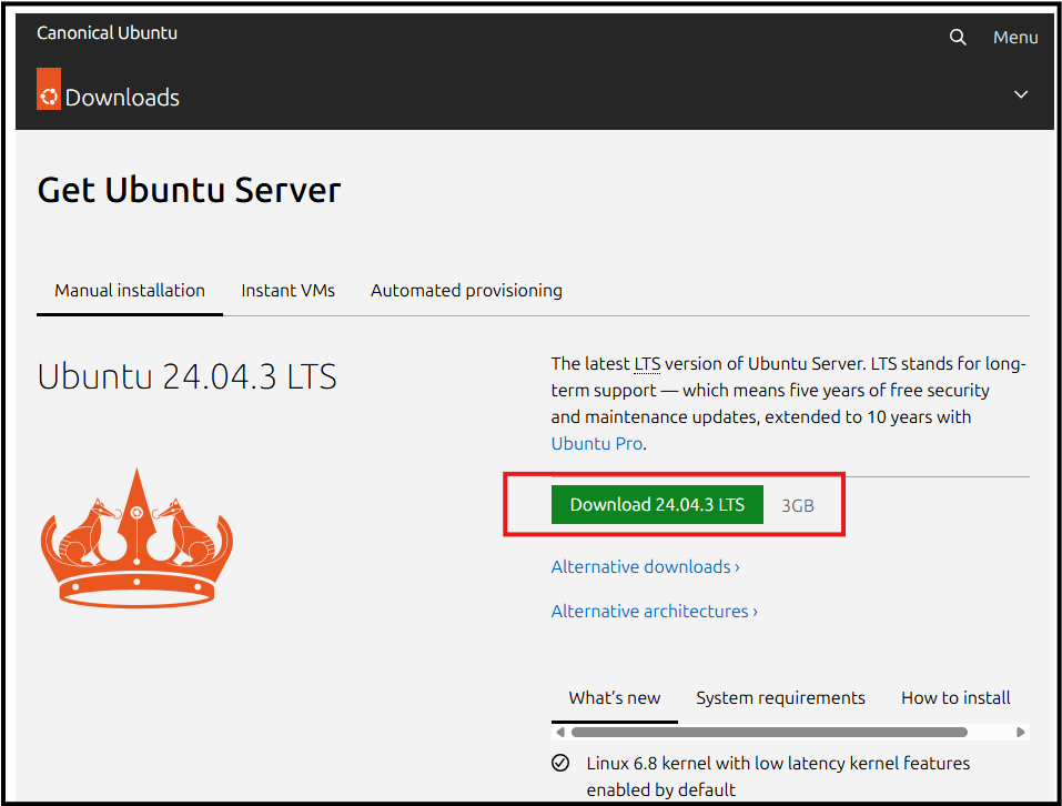 • Ubuntu.com → Server → LTS 버전 권장 (5년 지원)