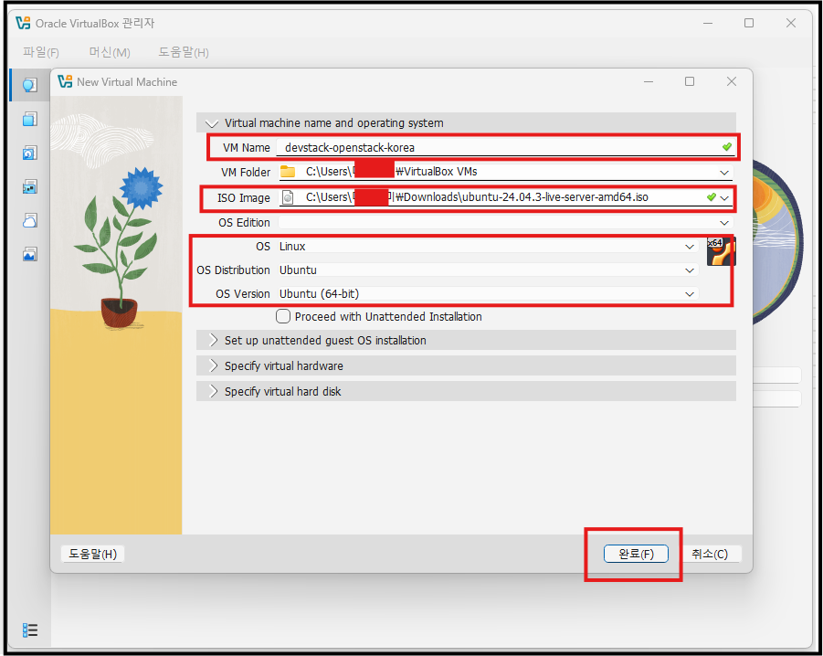 이 단계에서는 VirtualBox가 어디서 어떻게 실행될지 설정하는 부분이에요.