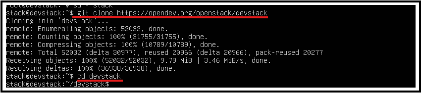 DevStack은 stack 유저 환경에서 설치됩니다.