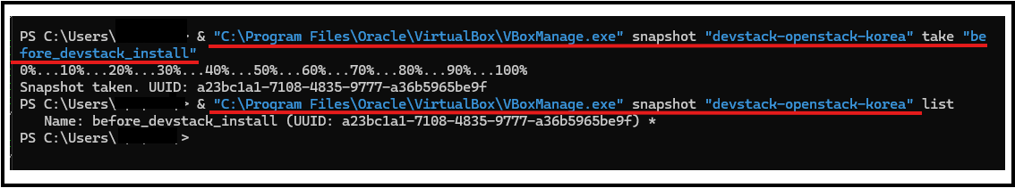 - DevStack 설치된 VM은 shutdown 대신 스냅샷 활용