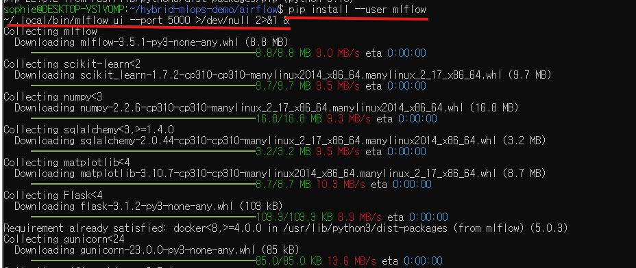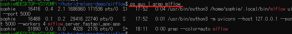 Airflow DAG에서 학습 결과를 기록하려면, MLflow UI 서버를 함께 띄워둡니다.