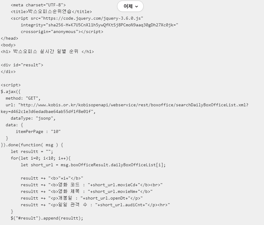 영화진흥회 api docs 자세히 보았다면 이러한 실수를 하지 않았을텐데 말이다.