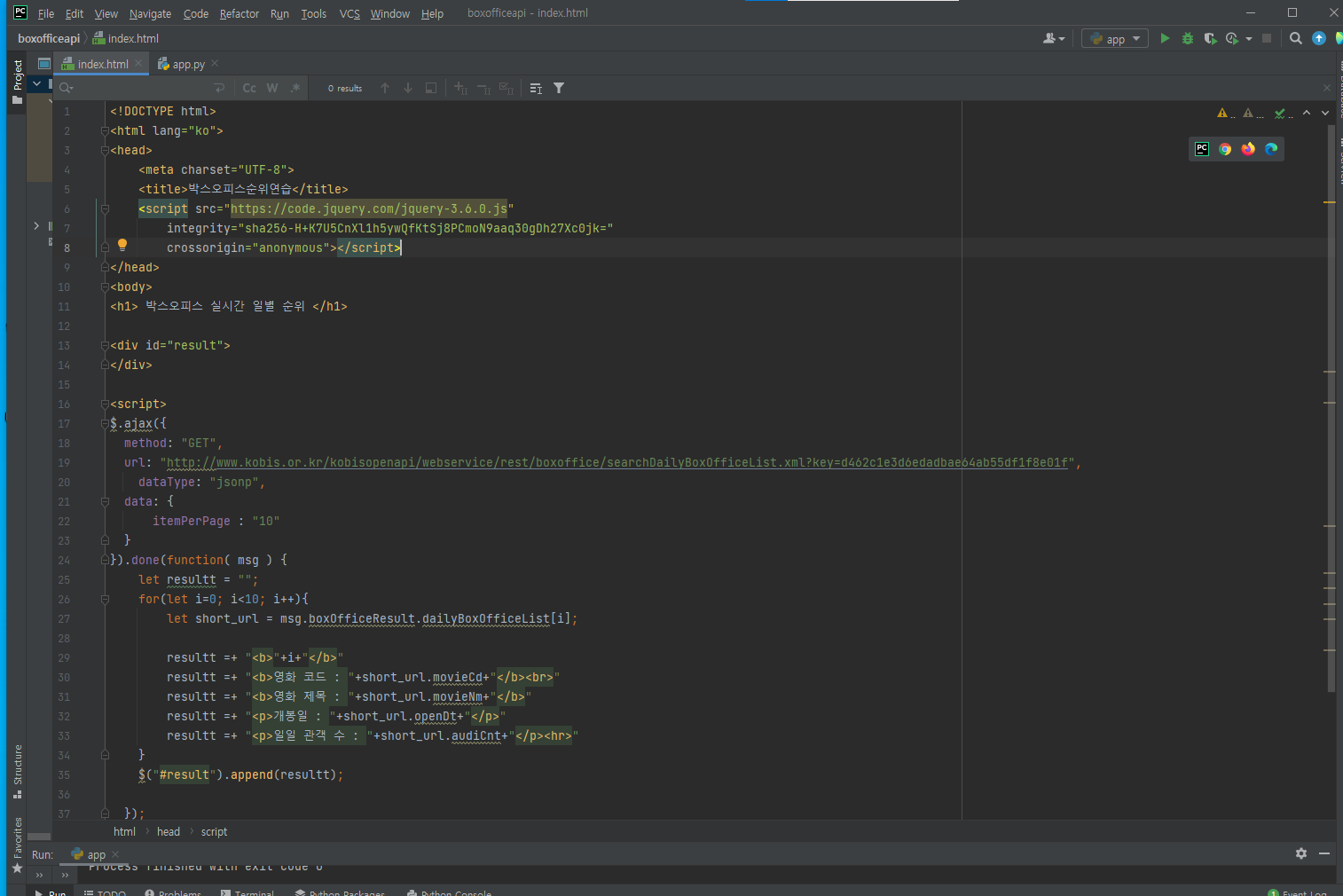 영화진흥회 api docs 자세히 보았다면 이러한 실수를 하지 않았을텐데 말이다.