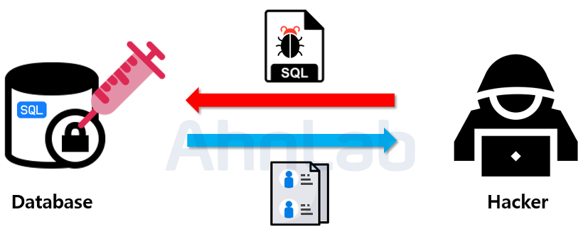 임의의 SQL 문을 주입하고 실행되게 하여 데이터베이스가 비정상적인 동작을 하도록 조작하는 행위