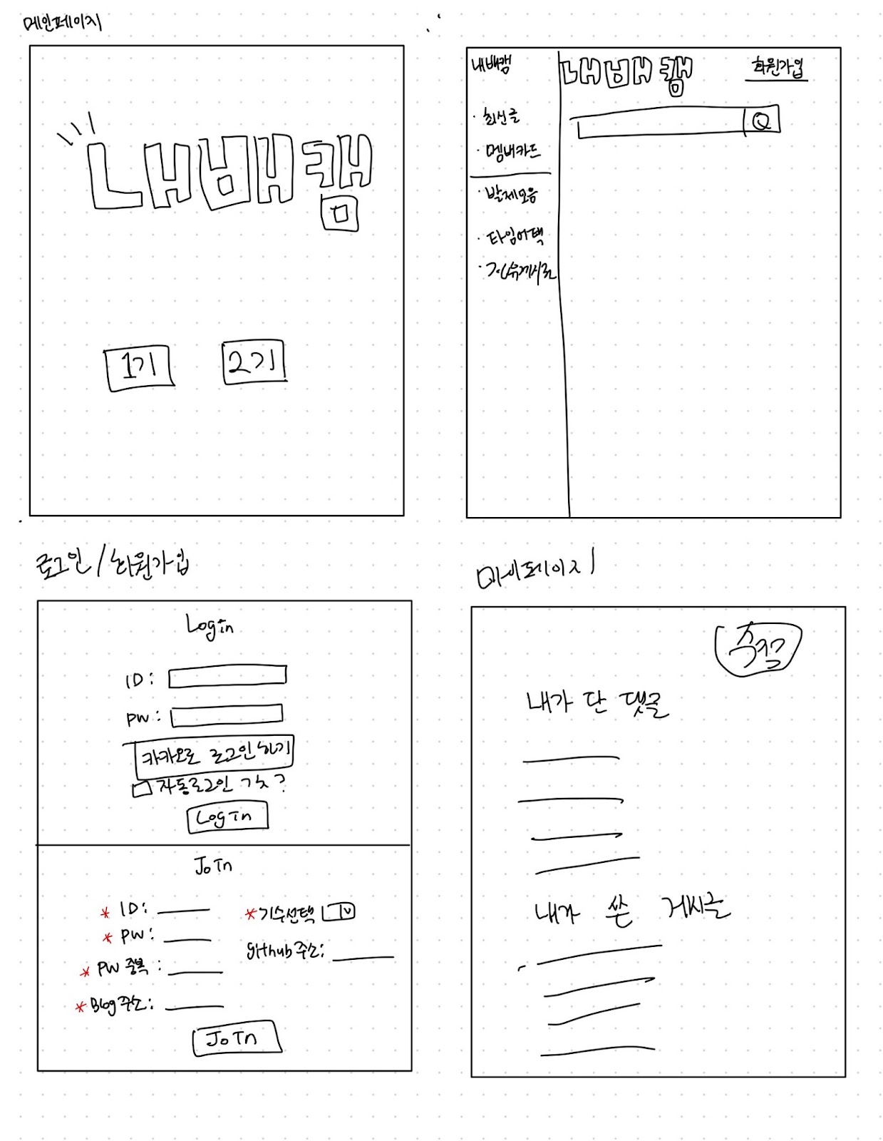 저는 자유게시판 기능 구현을 당담하기로 했습니다.