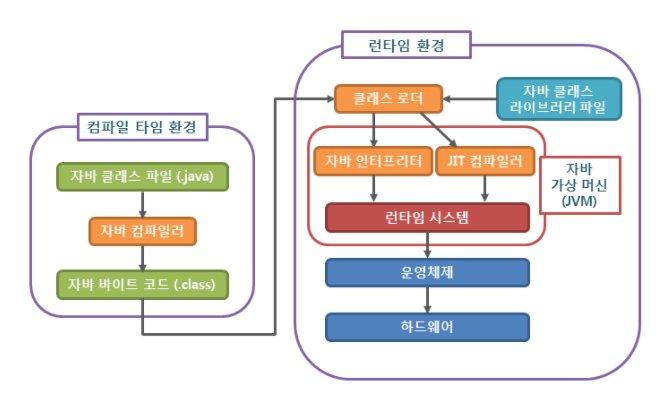 JVM은 자바로 짜서 컴파일한 소프트웨어들이 JVM에 깔린 어떤 종류의 컴퓨터에서든 돌 수있게해주는 것!