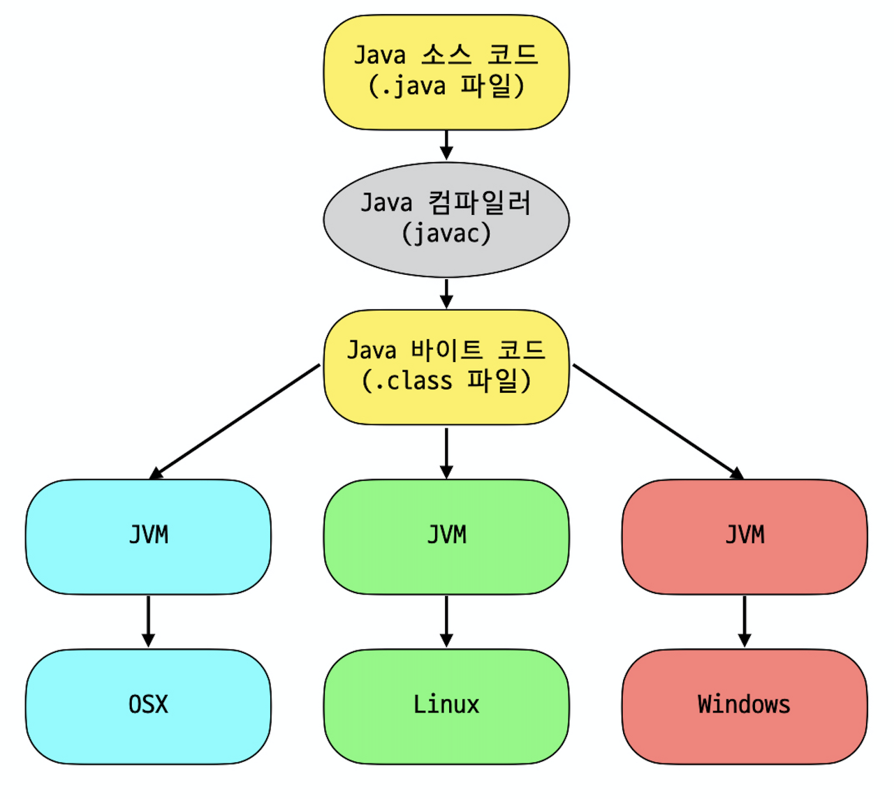 쉽게 말하자면, 각 종류의 컴퓨터 마다 JVM이라는 전담 통역센터가 있는것입니다.