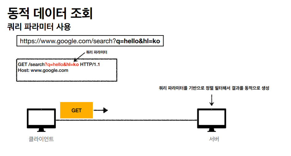 - GET은 쿼리 파라미터 사용해서 데이터를 전달