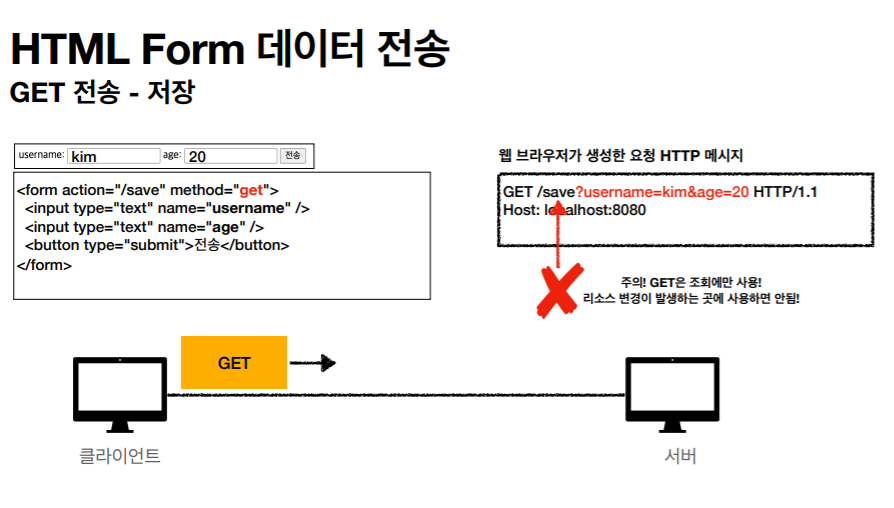 * 예) abc김 -> abc&EA%B9%80- HTML Form은 GET 전송도 가능