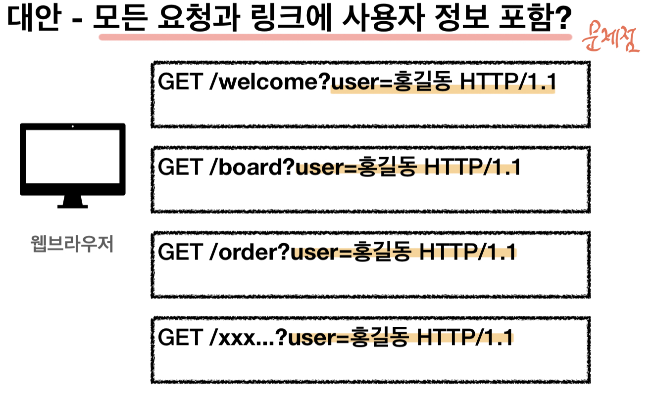 -> 문제1) 모든 요청에 사용자 정보가 포함되도록 개발해야함 ( 난이도 up )