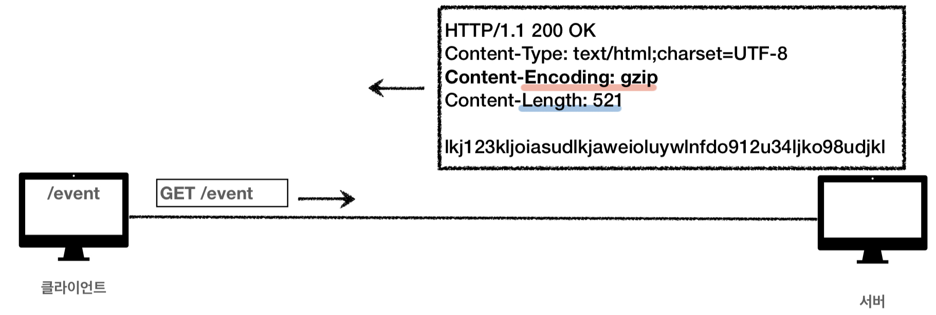 -> 데이터 전달 쪽에서 압축 후 인코딩 헤더 추가