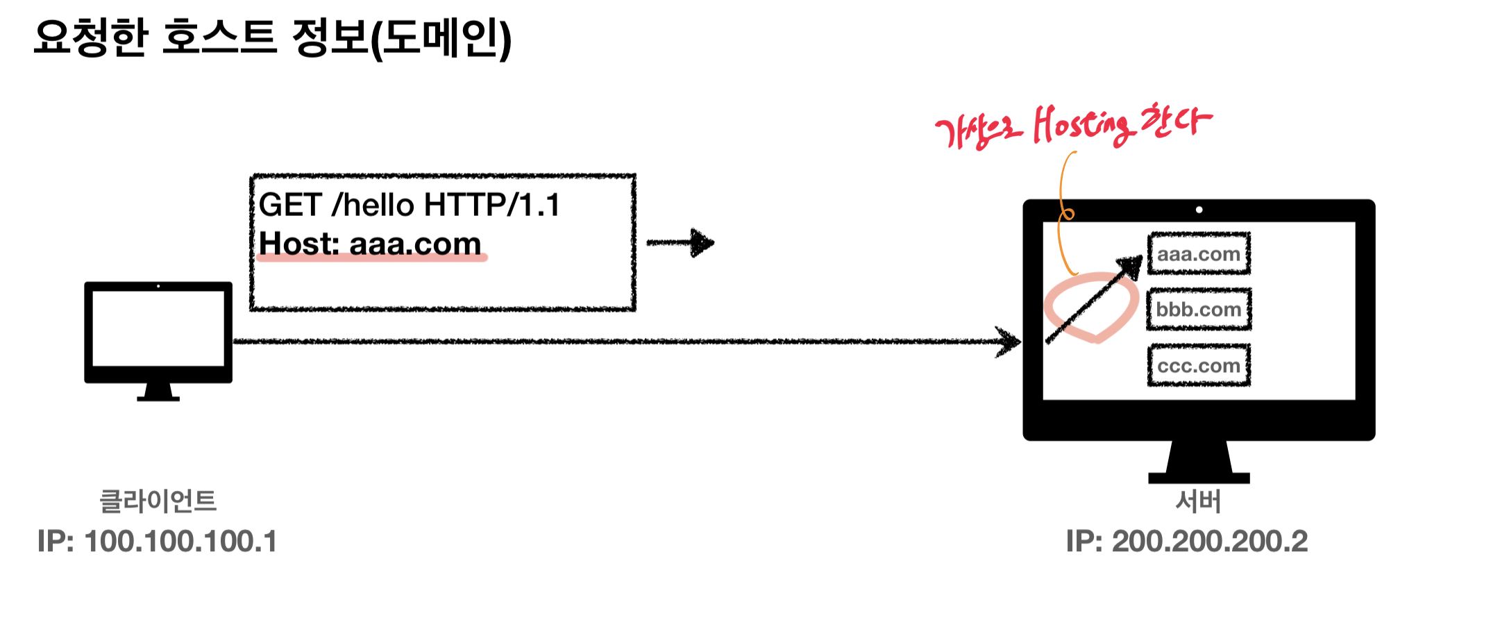 -> request에서 보낸 Host정보를 읽고 서버에서 hosting을 진행한다.