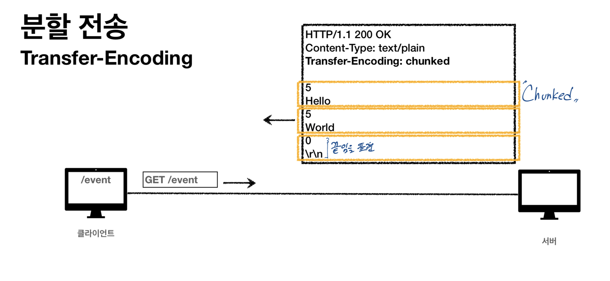 -> 용량 큰 데이터를 쪼개서 보내는데, 이때는 content-length를 보내지 않는다(쪼개서 보내기에)