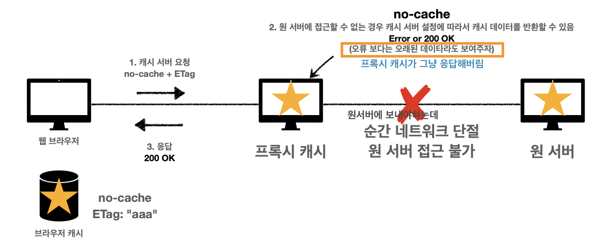 데이터는 캐시해도 되지만(가져다 써도 되지만) 항상 origin 서버에 검증하고 사용 !! (캐시 프록시 서버에는 뭘 하면 안되고 원서버까지 가서 검증해야 한다는 것