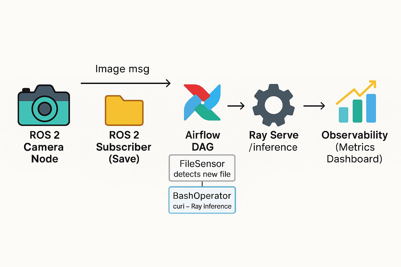 이전 포스팅에 이어서 Airflow + MinIO + Ray Serve를 하나의 Pipeline으로 연결해,“카메라 이미지 업로드 → S3KeySensor 감지 → Ray 추론 호출”이자동으로 이어지는 end-to end 흐름을 완성해보려고 합니다. 단계별로 진행하면,MinIO 초기화 (버킷 생성) →Airflow DAG 추가 (S3KeySensor → Ray Serve) →Airflow와 MinIO 연결 설정 →실제 업로드 트리거와 DAG 실행 확인 까지 하나의 자동화된 Data Flow를 직접 볼 수 있습니다. 이 시리즈의 목적은 “Local 환경에서 Hybrid MLOps Pipeline이실제로 어떻게 동작하는지”를 보여주는 거예요.실제 카메라 이미지 대신 https://picsum.photos ..